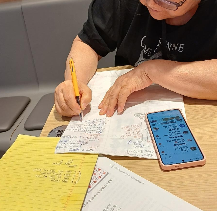 멘티 어르신 역시 배운 내용을 잊지 않기 위해 꼼꼼히 필기하는 등 열정적인 자세로 교육에 임하고 있습니다.