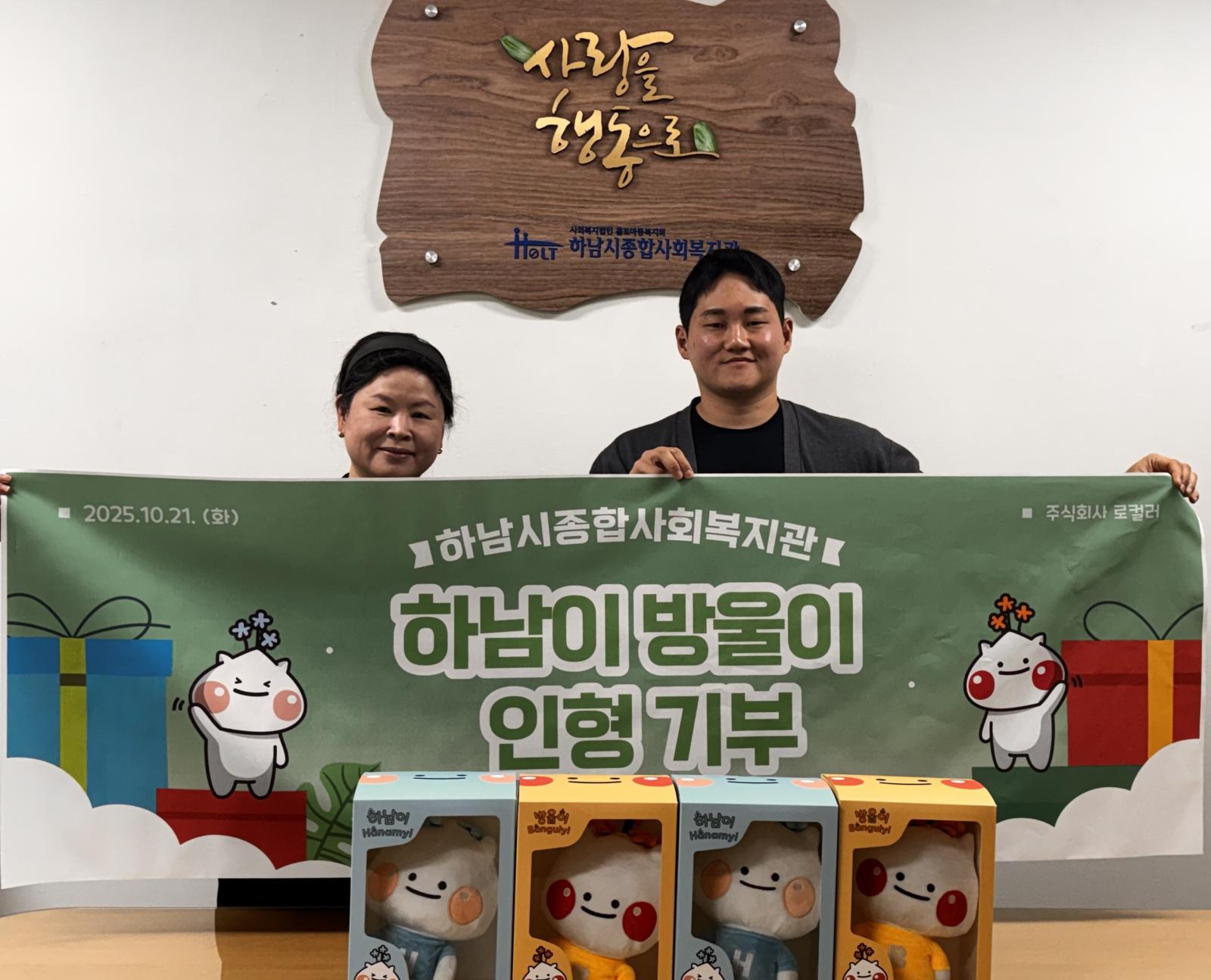 하남시 마스코트 ‘하남이’와 ‘방울이’ 인형 굿즈 100개를 하남시종합사회복지관(관장 김혜성)에 후원했습니다.