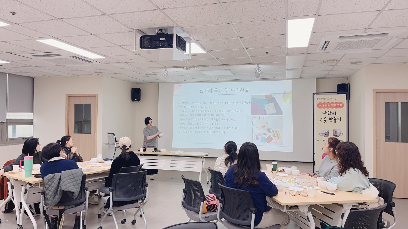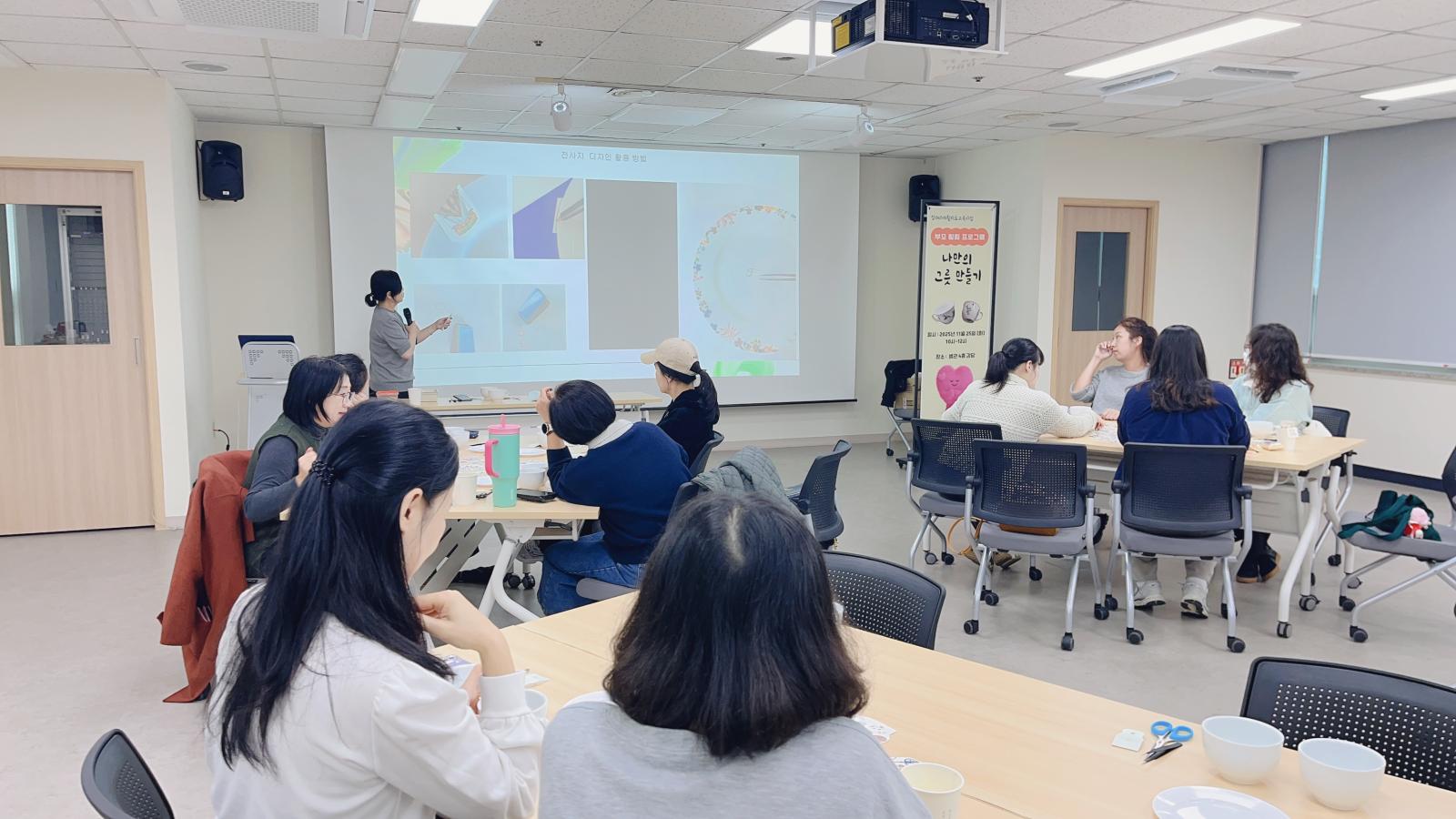 2025 부모 힐링 프로그램 '나만의 그릇 만들기' 작성일 : 2025.11.25 | 조회수 : 357 안녕하세요.하남시종합사회복지관입니다.25년 11월 25일 (화) 복지관 치료실 이용 아동 부모님을 대상으로 부모 힐링 프로그램을 진행하였습니다.완성된 나만의 그릇을 보며 작은 성취감과 효능감을 느낄 수 있었던 시간이었습니다.추운 날씨에도 불구하고 참여해 주신 부모님들께 감사드리며 더 좋은 프로그램으로 만나 뵙기를 바라겠습니다.