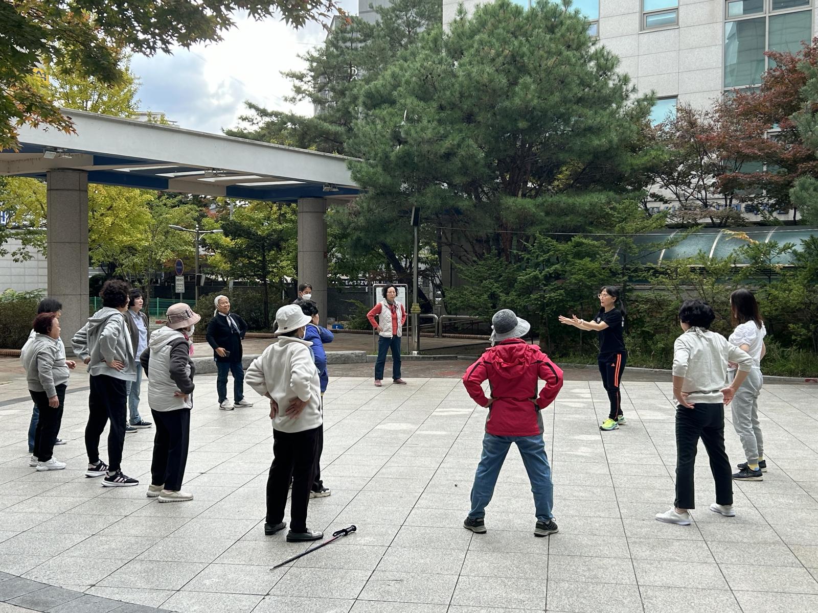 강사님의 구호에 맟춰 천천히 걷고 뛰고를 반복했어요.