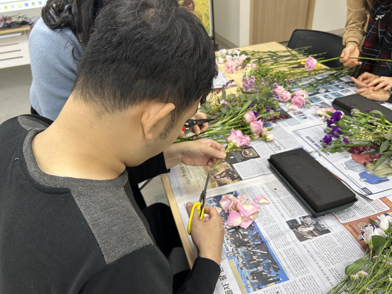 꽃을 직접 자르고 프로랄폼에 직접 디자인해보면서