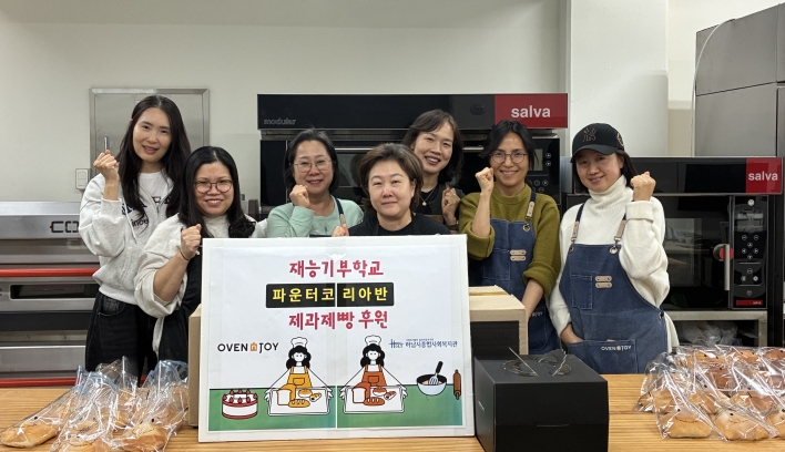 오븐앤조이 파운터코리아반 2월 제과제빵 봉사 작성일 : 2026.02.26 | 조회수 : 90 안녕하세요 하남시종합사회복지관입니다.'오븐엔조이 재능기부학교 파운터코리아반'에서 2월 제빵 봉사활동으로 제작한 빵과 케이크를 후원해주셨습니다.감사합니다.