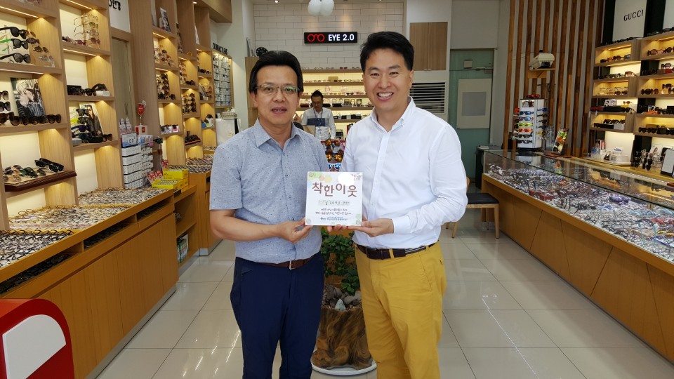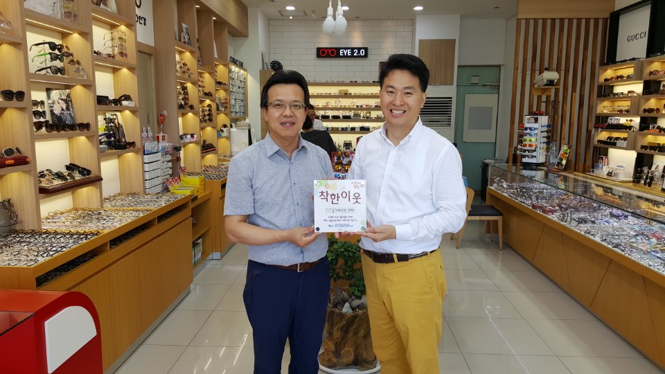 하남시청 앞 트레벨 건물 1층에 위치한 아이점영 안경원과 함께 착한이웃 현판 전달식을 진행하였습니다.