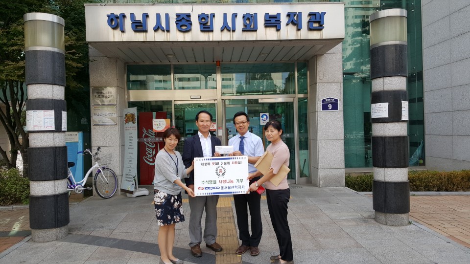 한국전력공사 동서울전력지사에서는 꾸준히 하남시 저소득 가정을 돕기위해 복지관에 후원을 하고 있습니다.