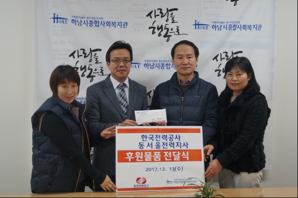 이번 월동물품 한국전력공사 동서울전력지사에서 어려운 가정을 돕고자 마련하였으며, 전달된 물품은 하남시 지역 저소득가정에 전달될 예정이다.