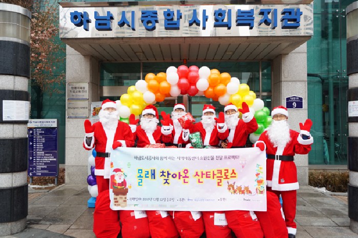 몰래 찾아온 산타클로스 작성일 : 2017.12.24 | 조회수 : 11666 2017. 12. 22(금) 15:00~18:00 하남도시공사에서 지원하는 '몰래 찾아온 산타클로스'가 진행되었습니다. 하남도시공사 직원분들이 직접 봉사로 참여하였으며, 관내 지역아동센터를 방문하여 이용 아동 및 청소년 380명에게 소원선물과 맛있는 간식을 전달하였습니다. 아이들에게 좋은 추억을 선물해준 하남도시공사에 감사드립니다.