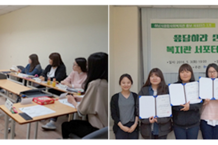 2016 저소득 가정 건강증진 프로그램 온기종기(溫器悰器) - 영양교육 2016-06-08 조회수 13,468 2016년 이마트와 함께 하는 지구사랑 환경사랑 그림대회 개최 2016-06-03 조회수 13,300 2016년 노인공익활동지원사업 참여자 활동교육 실시 완료 2016-06-02 조회수 13,023 가족문화행사 공연 '버블 매직쇼' 실시 2016-06-01 조회수 13,755 2016년 노인공익활동지원사업 참여자 활동교육 실시 2016-05-30 조회수 13,340 2016 노인 공익활동지원사업 상반기 참여자 및 수요처 간담회 실시 완료 2016-05-10 조회수 13,556 '응답하라 2030!' 청년서포터즈 발대식 진행 2016-05-09 조회수 13,477 유디치과 연계 사례관리대상자 치과진료 실시 2016-05-09 조회수 13,679 채움놀이터 3기 활동가 교육 실시 2016-05-04 조회수 12,973