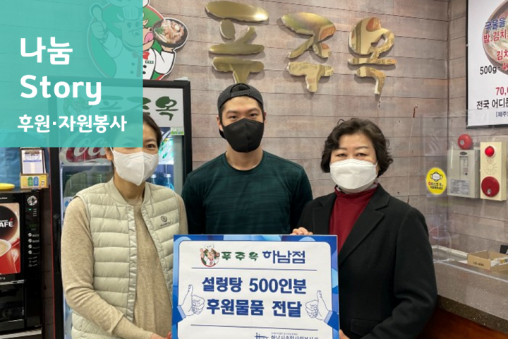 2022 같이의가치(지역주민만나기) 1차 실시 2022-02-04 조회수 9,780 '경기 먹거리 그냥드림 코너' 설맞이 행사 진행 2022-02-03 조회수 8,430 따뜻한 겨울나기 난방비 지원 사업 2022-01-28 조회수 9,365 웰메이드 푸주옥 하남점 후원물품 전달 2022-01-27 조회수 8,646 청장년 1인 가구 밥상지원 '같이혼밥' 2기 2022-01-10 조회수 8,960 서울서문교회 아름지기와 함께하는 서문미장원 OPEN! 2022-01-07 조회수 8,871 집콕 크리스마스 [친환경 놀이공작소] 진행 2022-01-04 조회수 8,545 2021년 소원우체통 사업 진행 2021-12-31 조회수 9,675 엄마를 위한 온라인 마을공방-3차,4차 진행 2021-12-31 조회수 8,071