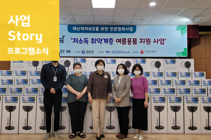 2021 저소득 취약계층 여름용품 지원사업 2021-07-06 조회수 12,303 인성함양 프로젝트 [인성학습키트-토피어리만들기] 진행 2021-07-05 조회수 11,846 하남시종합사회복지관 6월 월간소식 2021-06-29 조회수 10,549 홀트패밀리# 현판 전달식[인생극장쪽갈비 미사점] 2021-06-23 조회수 10,287 2021 채움팝업놀이터 2차 진행 2021-06-21 조회수 10,752 2021 채움팝업놀이터 진행 2021-06-21 조회수 10,584 하남시종합사회복지관장 이·취임식 2021-06-09 조회수 12,198 호국보훈의달 행사-호국영웅을 위한 전달식진행 2021-06-07 조회수 11,428 꿈나무나눔실천교실 호국영웅을 위한 정성선물만들기 2021-06-07 조회수 11,583