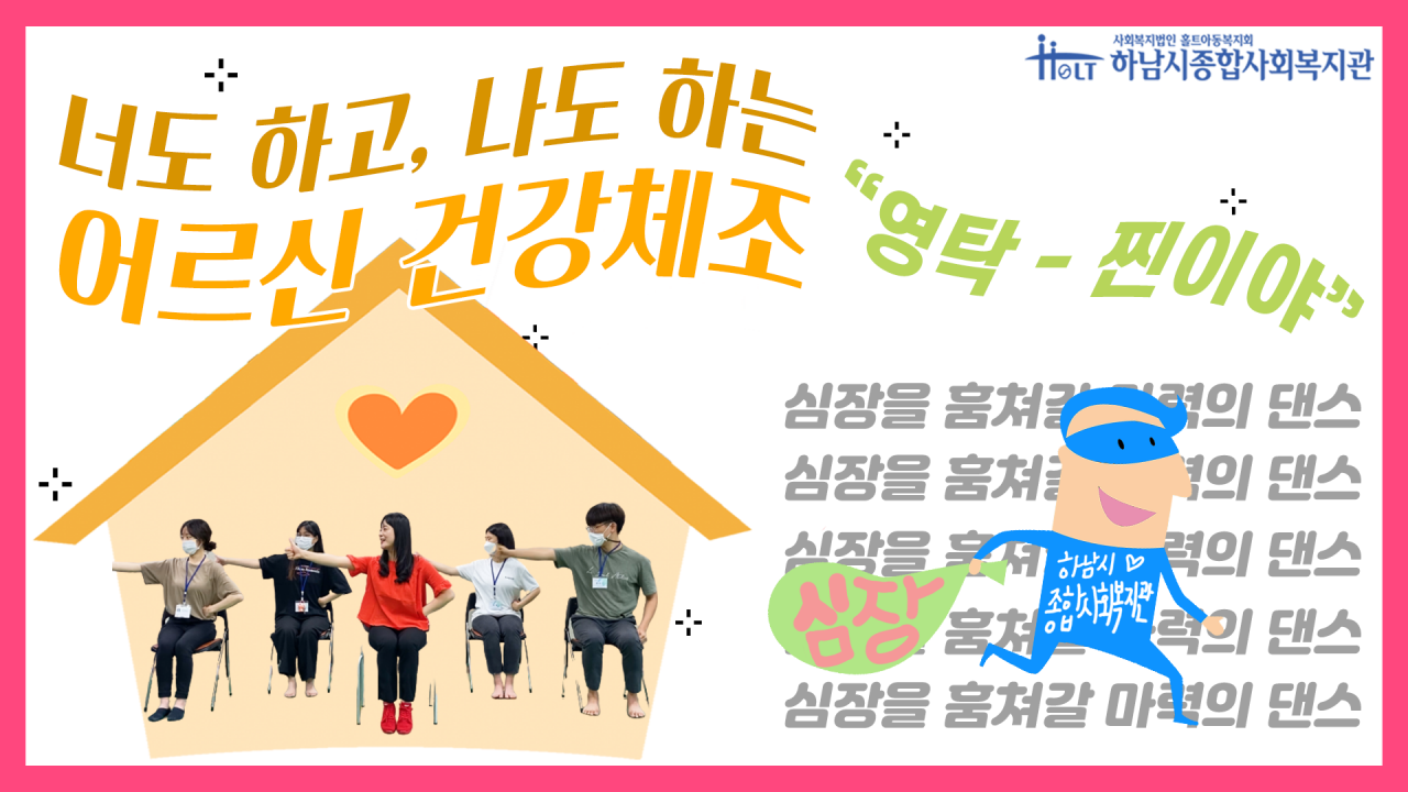 집에서 하는 어르신 건강체조(feat. 내 나이가 어때서 - 오승근) 2020-10-14 조회수 3,821 청소년을 위한 자원봉사학교 [청소년 나눔비책] 다시보기 2020-10-12 조회수 3,348 너도 하고, 나도 하는 어르신 건강체조(feat. 영탁-찐이야) 2020-09-15 조회수 3,937 코로나19 예방을 위한 복지관 이용 안전 수칙 2020-09-07 조회수 3,120 아이들을 위한 따뜻한 한 끼를 배달합니다 2020-08-19 조회수 2,654 파티플래너 : 페이퍼 플라워 2020-08-06 조회수 2,855 코로나19 - 아이들을 위한 특별한 식자재가 배달됩니다 2020-08-05 조회수 2,561 코로나19로 수고해주시는 분들에게 전하는 '땡큐박스' 후기영상 2020-08-04 조회수 2,643 앉아서 하는 어르신 건강체조(feat. 장윤정 - 짠짜라) 2020-08-04 조회수 3,624